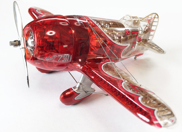 透明プラボディとメタル製脚カバーにはクリヤーレッドを筆塗りされています。