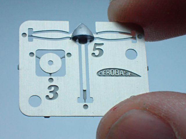 プロペラは洋白(ニッケル合金)エッチングパーツ。先端のスピナーはホワイトメタルとの一体成型です。