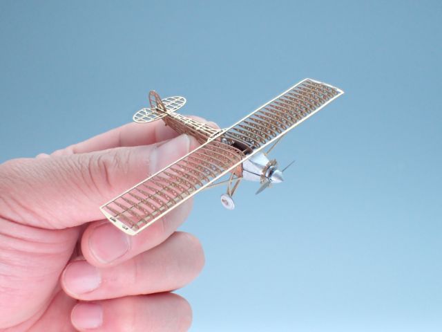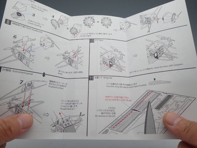 「金属の折り紙」をコンセプトに始まったマイクロウィングシリーズの第2作目です。真鍮エッチングパーツを折り曲げ、はめ込んでいきます。ワクにつながった翼リブを90度ひねるだけで立体的な主翼が完成。軽く曲げられ、しっかり仕上がる真鍮の感覚をお楽しみください。
