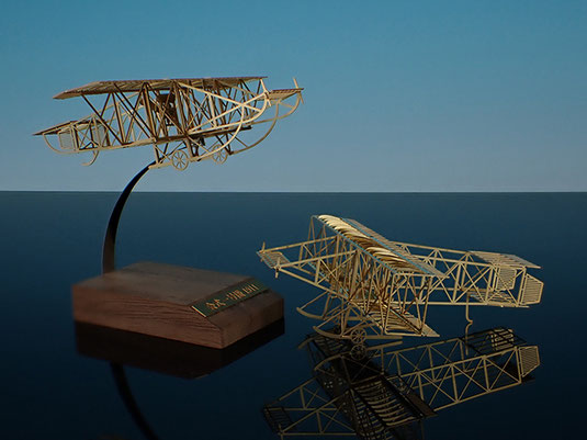 会式一号機は、日本初の飛行に成功した徳川好敏(よしとし)大尉がそのアンリ・ファルマン(右)を改良した機体です。