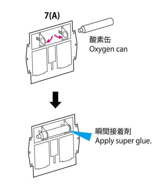 操縦席の後ろに積む酸素缶です。湯口が見えますね。