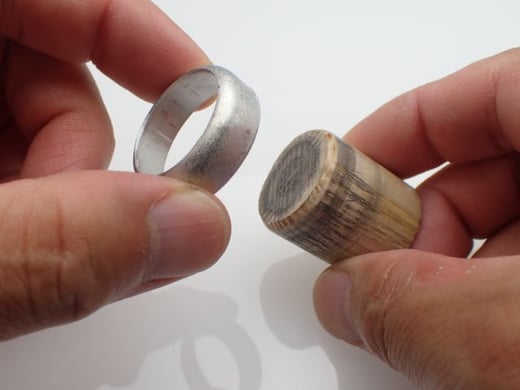 気になった形状のカウルは、木のジグにはめて円形にもどします。