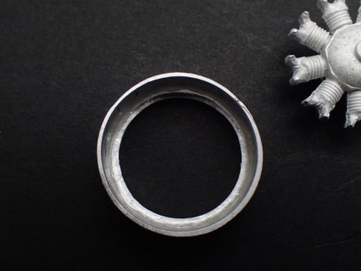 ホワイトメタルはすごくやわらかいので、エンジンを強くはめると、カウルがゆがんでしまいます。極端なものは、エンジンの9個のシリンダー通りに角のとれた9角形にゆがんでしまうこともあります。