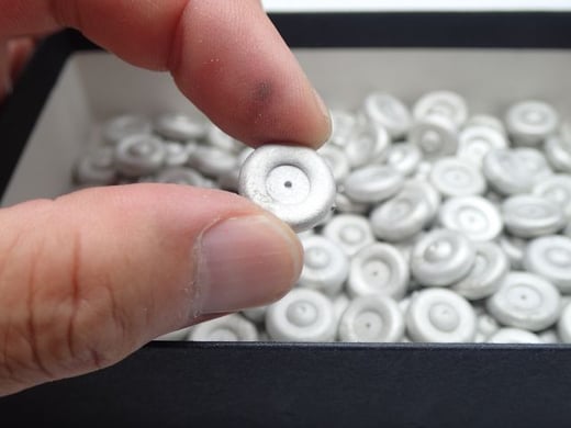 ゴム型で深い穴を再現しようとすると、細い柱(穴の逆型)が必要で、それではまっすぐな穴が開きません(遠心力により)。なので、原型には穴開けの位置がわかる程度の浅い穴を開けています。