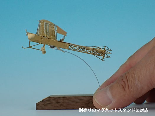で、これがエアロベース流。主翼をケタに差し込んだあと、ストッパーのツメを曲げずにおけば、2種類の翼型を交換することができます。やわらかい真鍮なので、数回ならツメを開閉してもOKです。