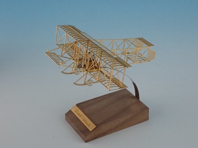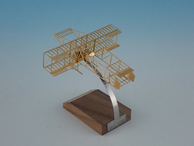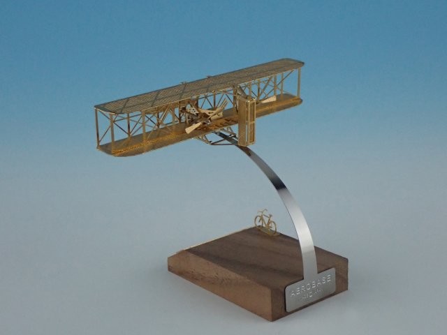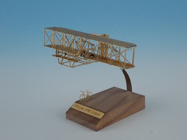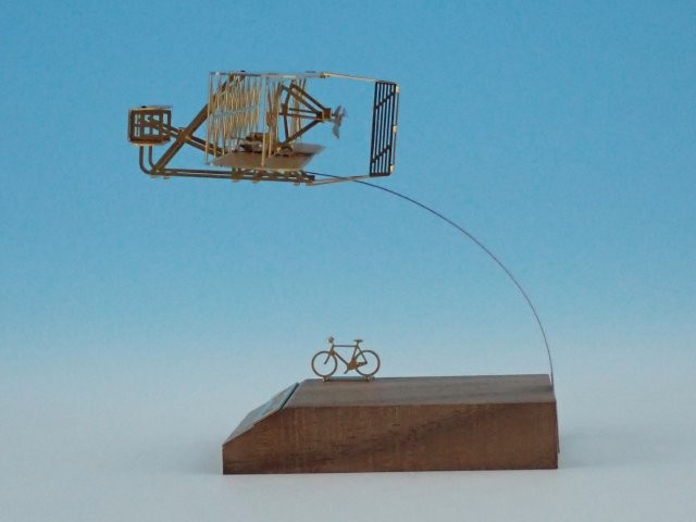 ライトフライヤーのキットに付属するネームプレートを貼り付けたところ。自転車も両面テープで。