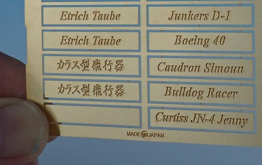機体名のないプレーンなネームプレートも入っています。鉄筆で機体名を刻んだり、コピーやデカールを利用してオリジナルのネームプレートを作れます。