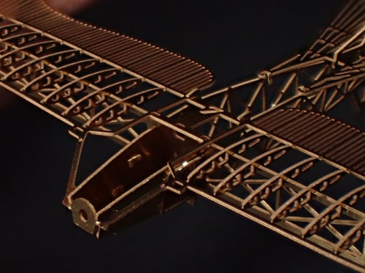 タウベ(鳩)の名で鳥にそっくりですが、鳥を模したのではなく、羽を持った植物、アルソミトラ・マクロカルパの種子が滑空することにヒントを得た飛行機です。