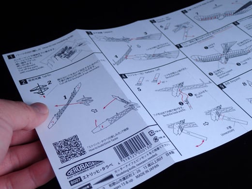 説明図は日英2か国語表記で絵を多用したステップ・バイ・ステップ方式。順番通りに少しずつ進めれば完成します。