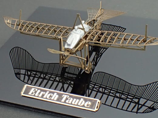 エトリッヒ・タウベは1910年に初飛行した第一次世界大戦の偵察機で、オーストリアのIgo Etrich(イゴー・エトリッヒ親子)が設計しました。