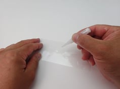 1. パーツが入っていた袋などに瞬間接着剤を1滴だします。