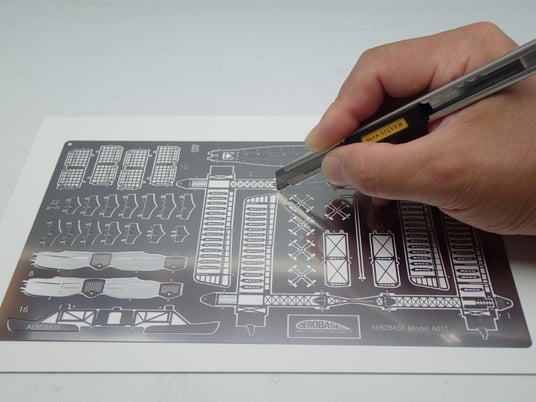 The utility knife (or called cutter knife in Japan) is the best thing for Aerobase models.