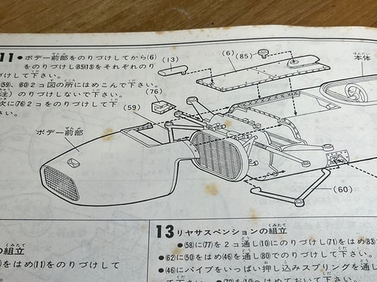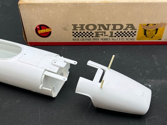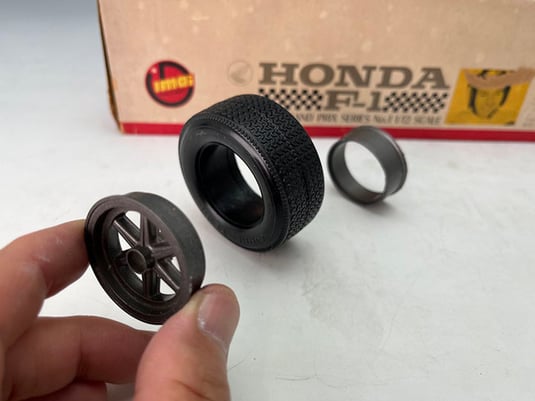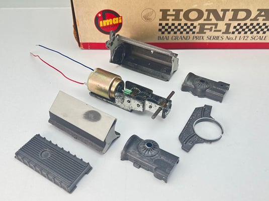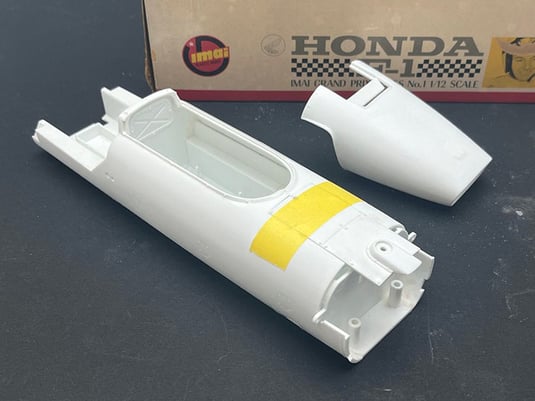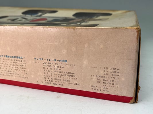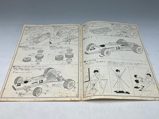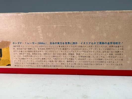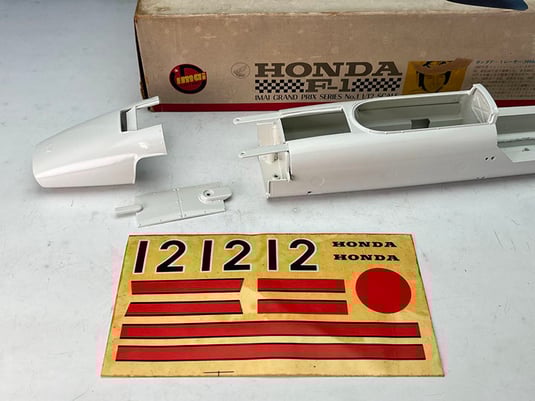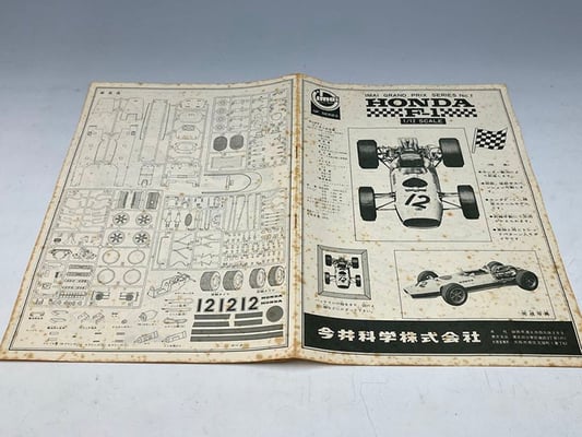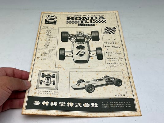 まずはイマイのホンダF-1から作っていきましょう。500x300x80mmの堂々たるパッケージ。当時の子供は誕生日プレゼントに買ってもらったりしたのでしょう。さぞワクワクしたでしょうね(現在の大人も)。