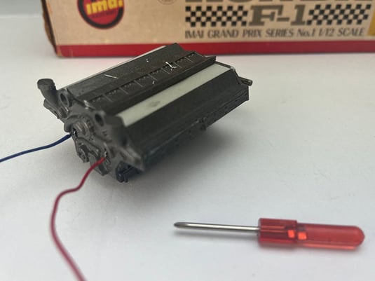 原因はキット付属の古いモーターでした。マブチ旧14モーターから、現行の140モーターに積み替えます。古いキットを活かすつもりでしたが、モーターの動きが悪いのなら意味のないことと割り切りました。