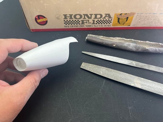 やすりで豪快に削って、合わせ目を一体化していきます。
