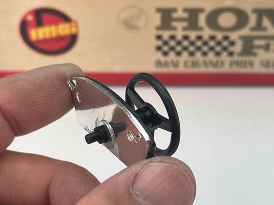 ハンドルは回せますが、タイヤとはつながっていません。連動させようと思ったのですが、複雑でないのがこのキットの特徴でもあるので、やめておきます。