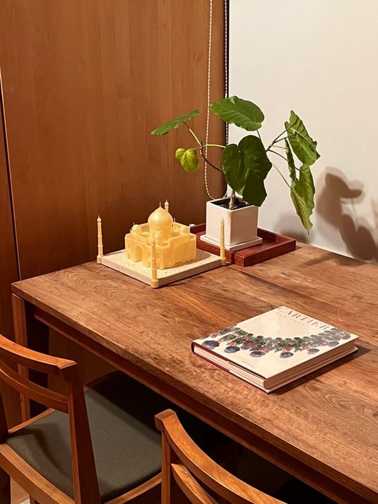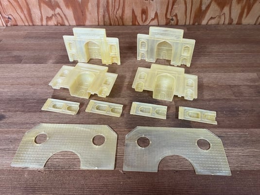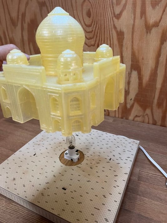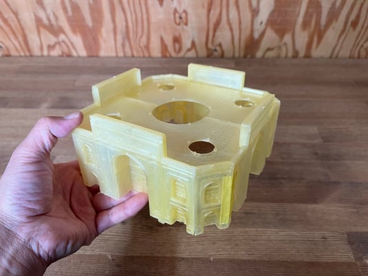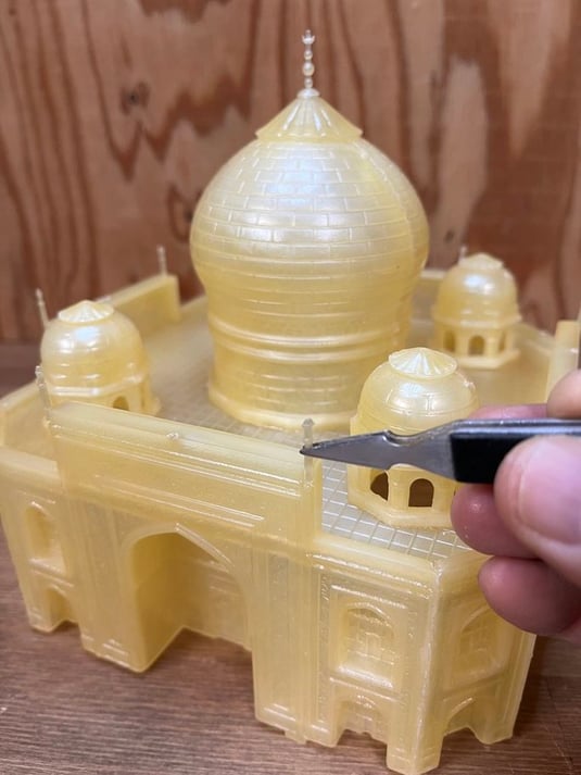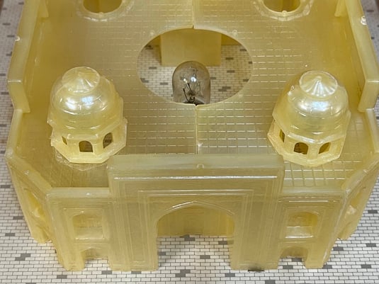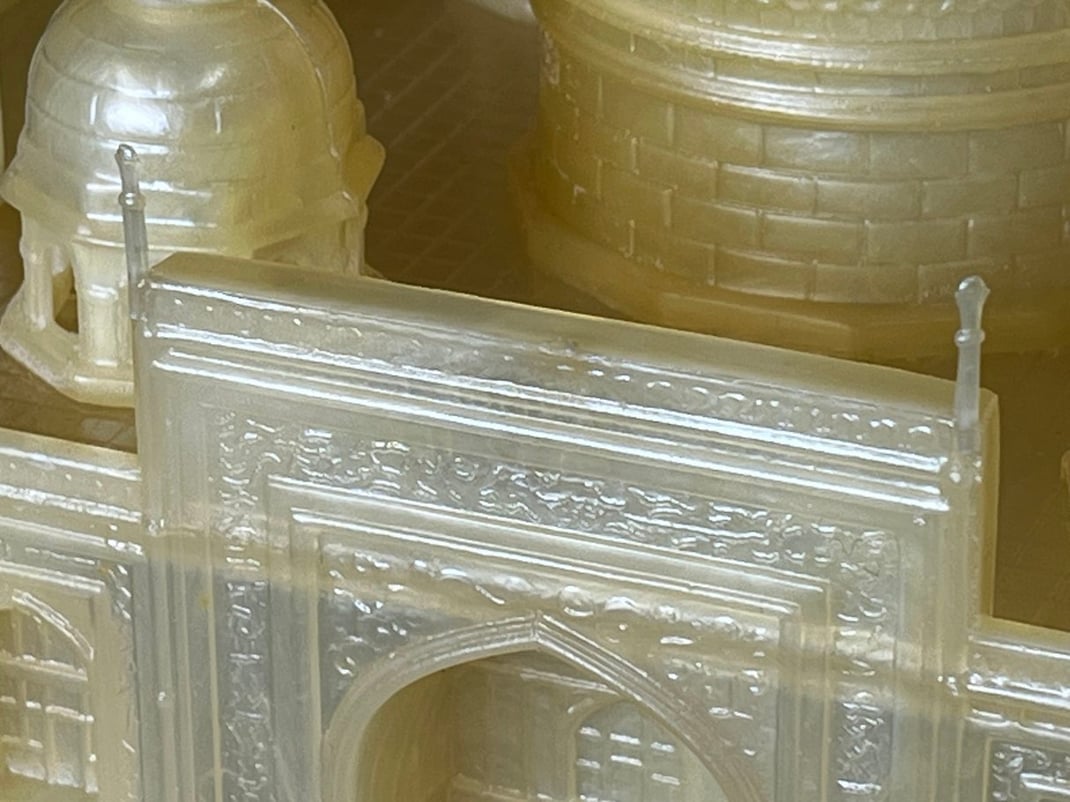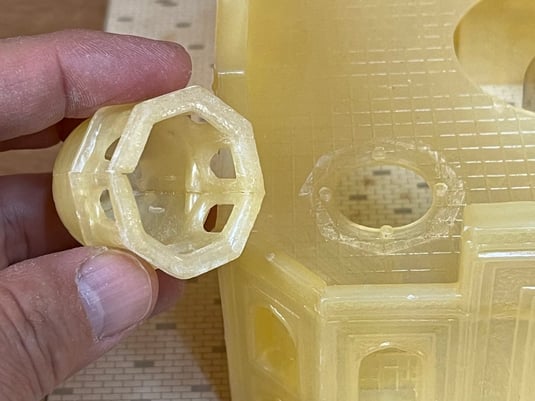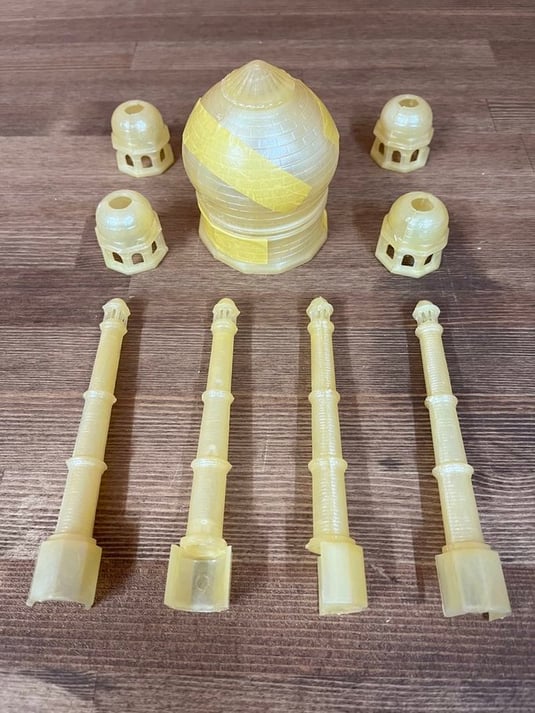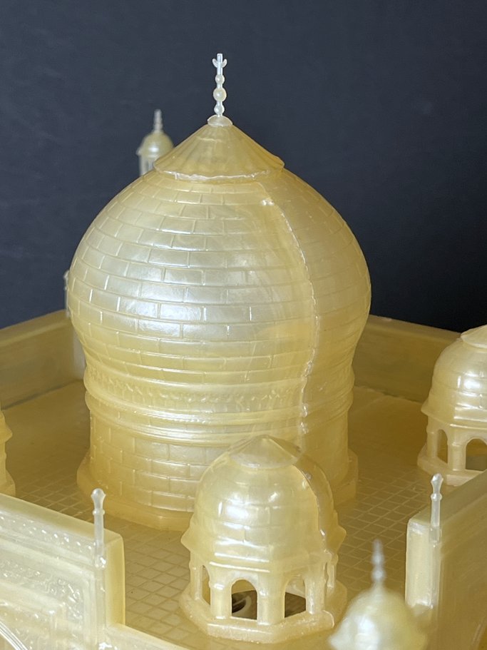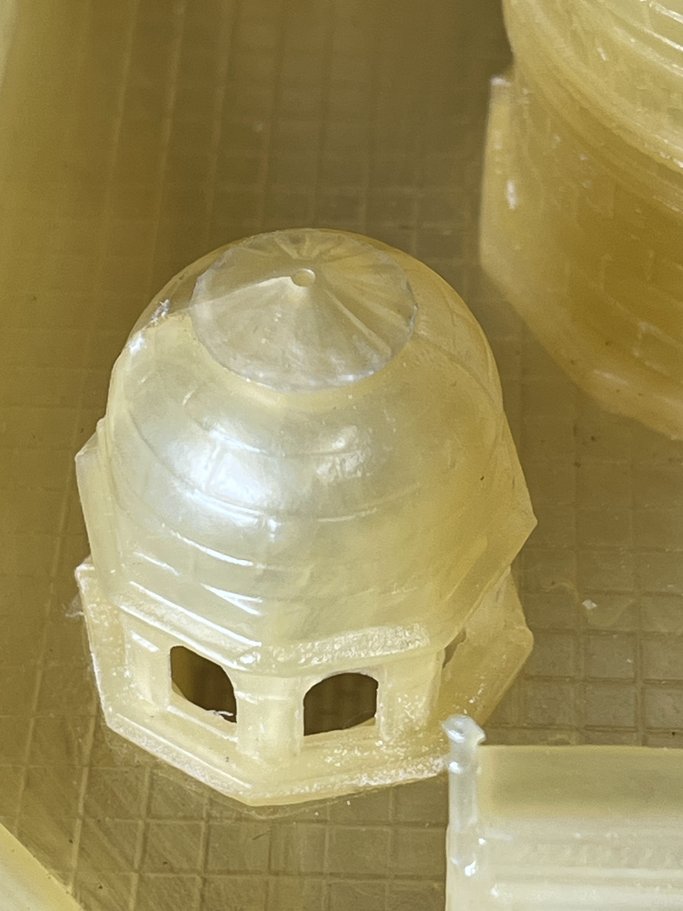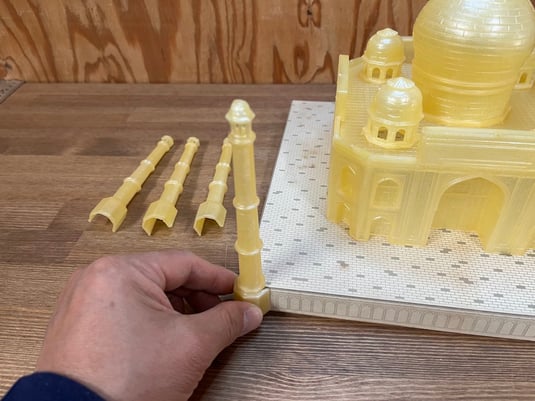 ミナレットを土台の角に取り付けます。土台の内部にしっかりした板を仕込んでおいて正解でした。