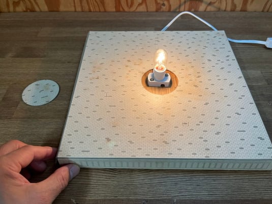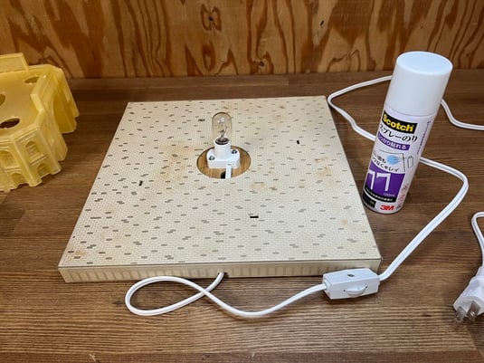しっかりした板で土台を作り直します。市販のスイッチ付きソケットを取り付け。