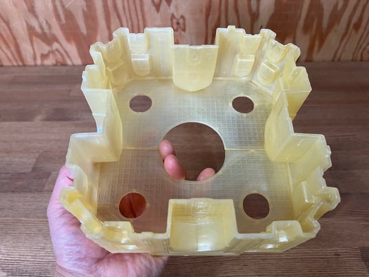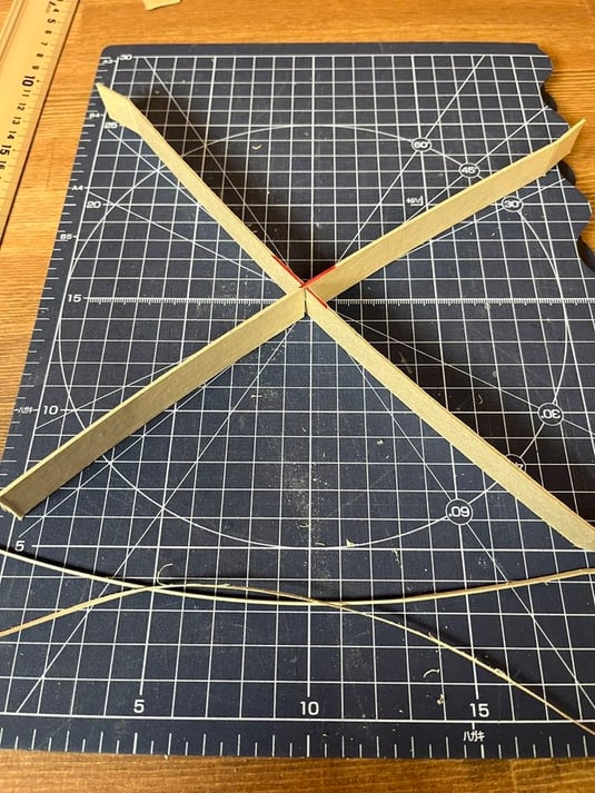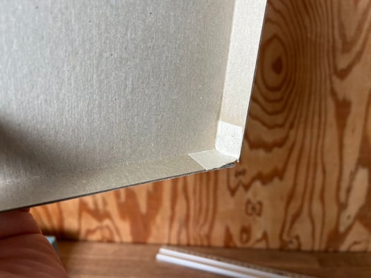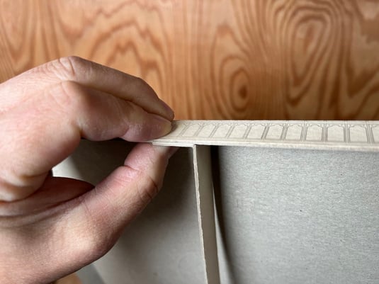 天井が設計寸法よりかなり収縮していて、壁の内側のミゾに差し込めばよいというわけにいきませんでした。天井には接着剤をつけず、ただはめ込みながら、外の壁のみ接着してつないでいきます。最終的に各壁の内側にドロっとした瞬間接着剤を流し込んで、無理やり固定しました。