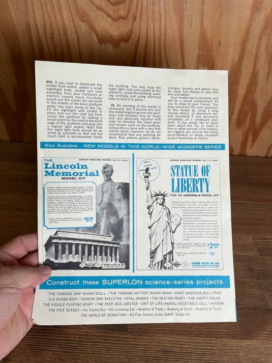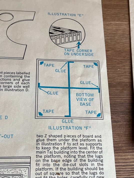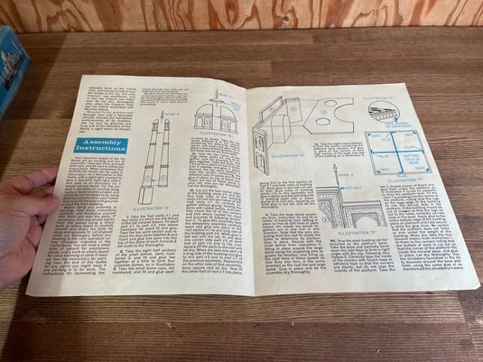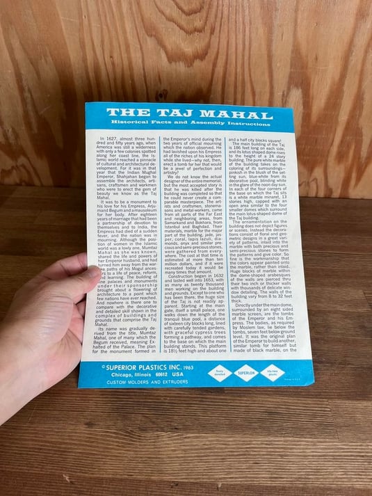 組立説明図。完成図はなく、表紙にはタージ・マハルについての解説のみ。