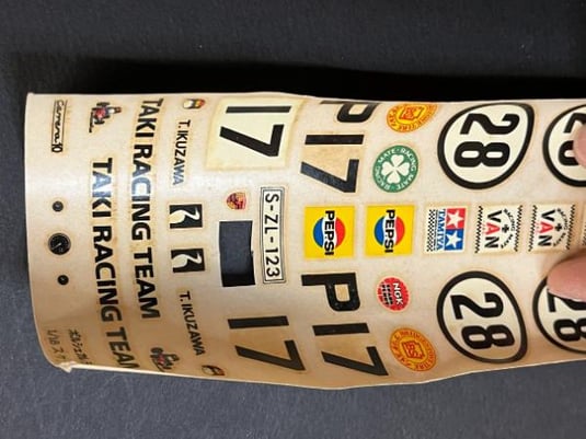 デカール(当時タミヤではマーク)はさすがに使えませんでした。お湯でノリを溶かすと、印刷部分が粉々になりました。
