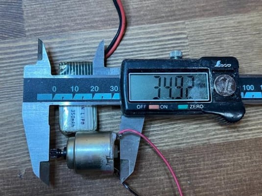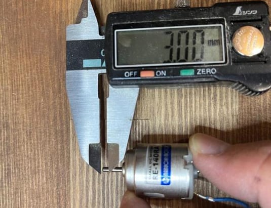 ギヤーボックスの第一ギア(クラウンギヤ)のシャフトに触れないよう、モーターのシャフトを3ミリ切り捨てることにします。