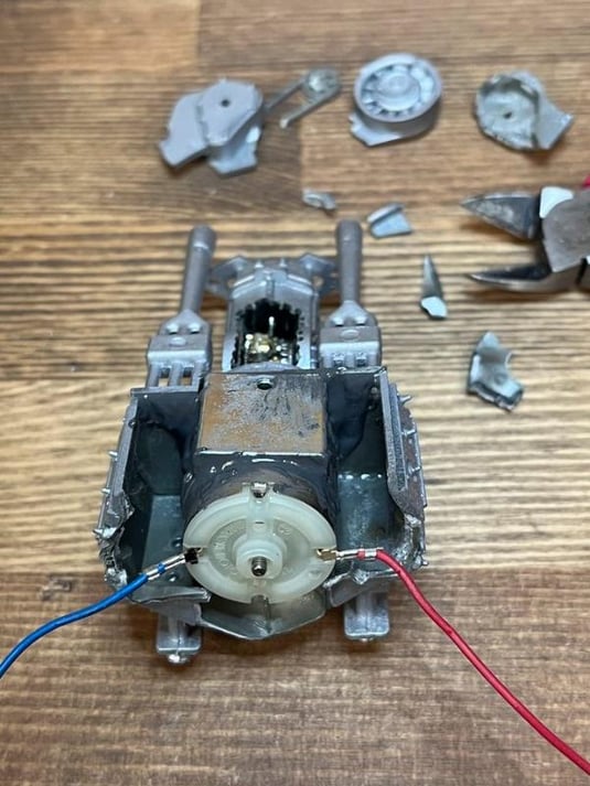 ちょっと大胆、ていうか雑ですけど、140モーターが収まるようにエンジンを切り捨てました。