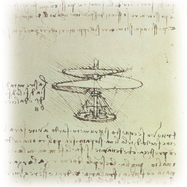 モナリザや洗礼者聖ヨハネなど、画家として高名なレオナルド・ダ・ヴィンチですが、絵画のほかにも、解剖学、建築、天文学、幾何学など、多才ぶりで知られます。なかでも、それらの研究を記した素描も見ごたえがあります。その中に、いくつかの航空機を連想させる絵が残っています。エアロベースでは、実際には製作されなかった素描を元に実機を想像して、立体模型キットに仕立てました。
