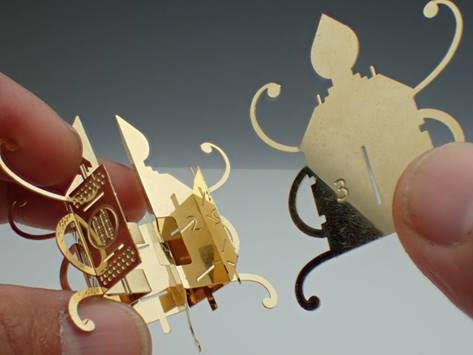 エアロベースでは、和紙のかわりに銅と24金メッキによるメタルキットとして再現。