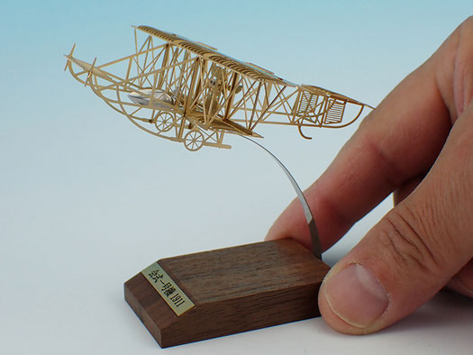 明治43年(1910)12月19日に、仏機アンリ・ファルマンで日本初の動力飛行を達成した徳川好敏大尉が経験を元に設計したのが、この会式一号機です。明治44年(1911)10月25日の記録飛行では、「高度50mで時速72km、最大高度85m、飛行距離1,600mを測定。操縦性能もアンリ・ファルマンよりも良好」とあります(出典:日本航空機辞典上巻/モデルアート社)
