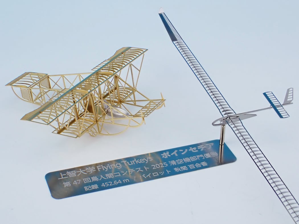 さて、上智大学 Flying Turkeys ポインセチア、鳥人間コンテスト2025滑空機部門の優勝機です。